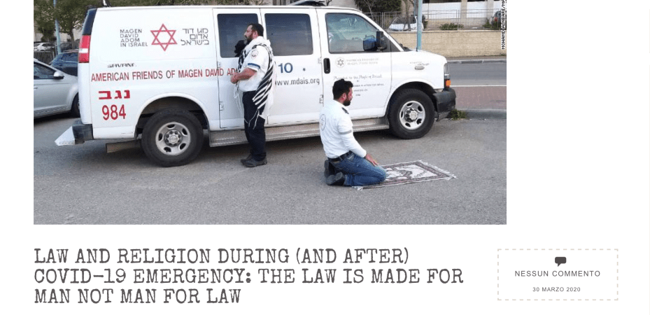 There is a national law (and supranational) and a religion law of the emergency (www.diresom.net, here a wide collection of measures, regulations and provisions). In the religious rights it’s generally possible to find several previsions of exceptions to the rule. But these exceptions themselves are not enough compared to the sanitary emergency. As the liberal constitutions, even the confessional organizations aren’t prepared to cope with Sars-Cov-2, that means to adapt it to their regulatory categories. The only exception is made by the Islamic tradition, that has a specific hadit, that refers precisely to epidemics: “If an epidemic may appear in a land, don’t go there; and if you are in that land, don’t escape from it”[12].